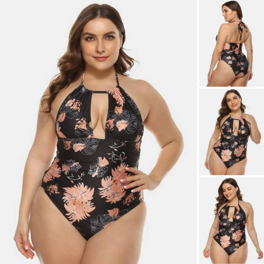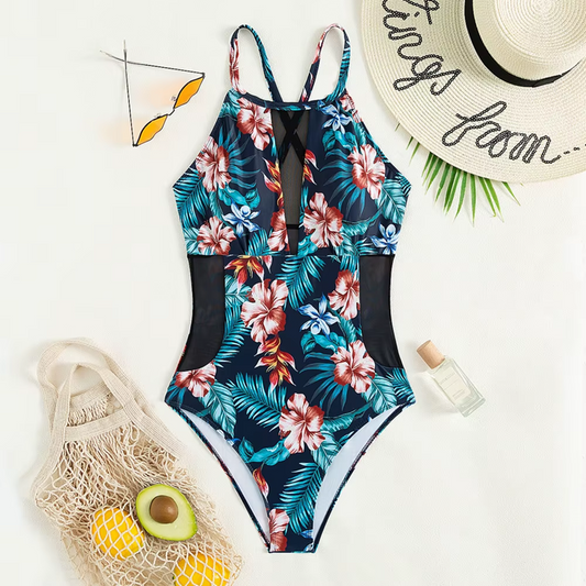 Stilingas gėlių rašto liekninantis vienos dalies maudymosi kostiumėlis