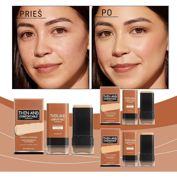Ilgai išliekantis dviejų galų makiažo pagrindo pieštukas užtikrina tobulą padengimą ir natūralų matinį efektą visai dienai